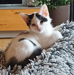 Der andere Kater ist schwarz mit weißer Zeichnung, wir